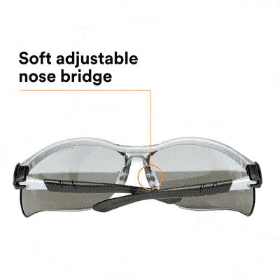 3M™ BX™ Protective Eyewear features adjustable temple length, lens angle, and nosebridge to allow a more comfortable fit.