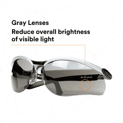 - Grey lens performs best in outdoor daytime work environments