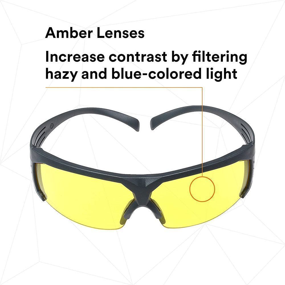 - Amber lenses reduce interference from blue light to improve contrast, excellent UV protection. Popular for inspection tasks, and hazy, overcast or foggy days. Never use for night driving.
