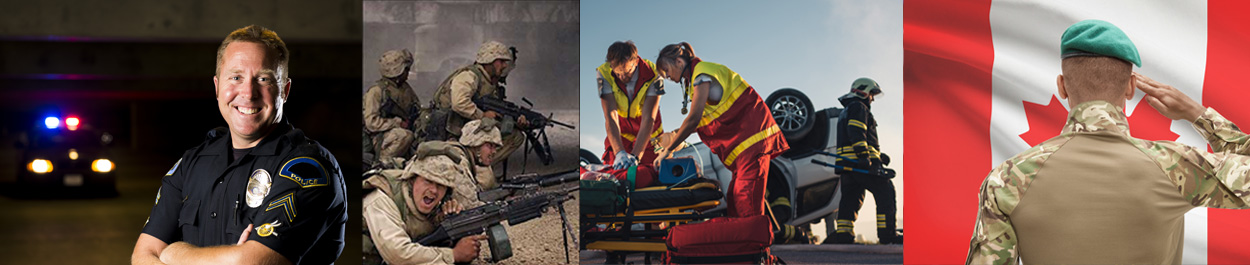 - First Responders (Police officers, Firefighters, Paramedics, Correctional Officers, Border Services Agents, Search and Rescue)