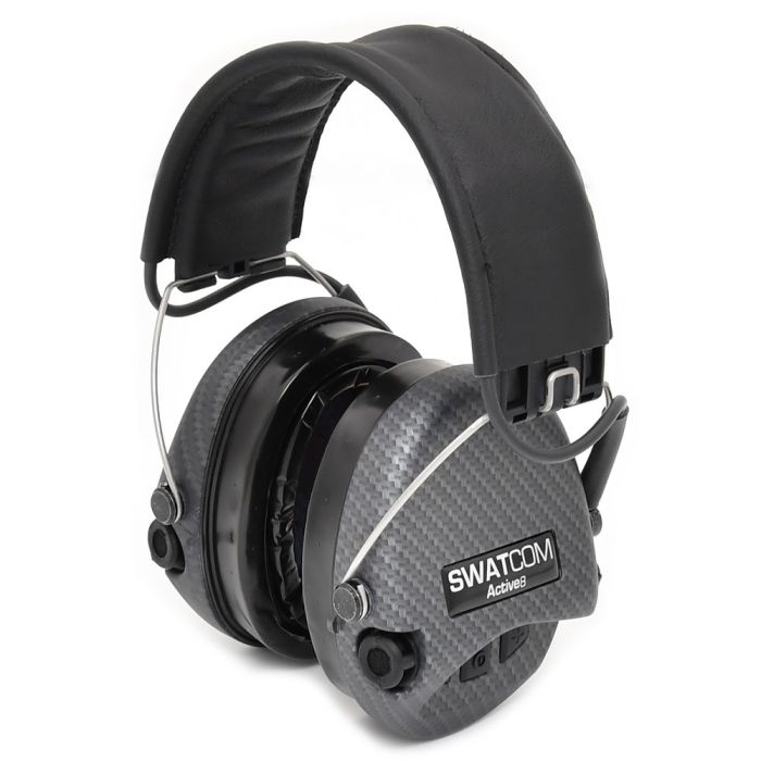 SWATCOM Active8 Waterproof Headset, Carbon Fiber Cups, Black Leather Headband, Gel Ear-seals